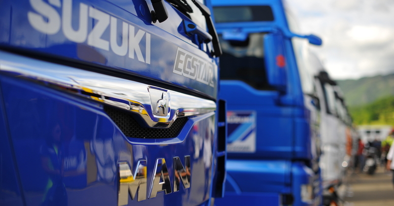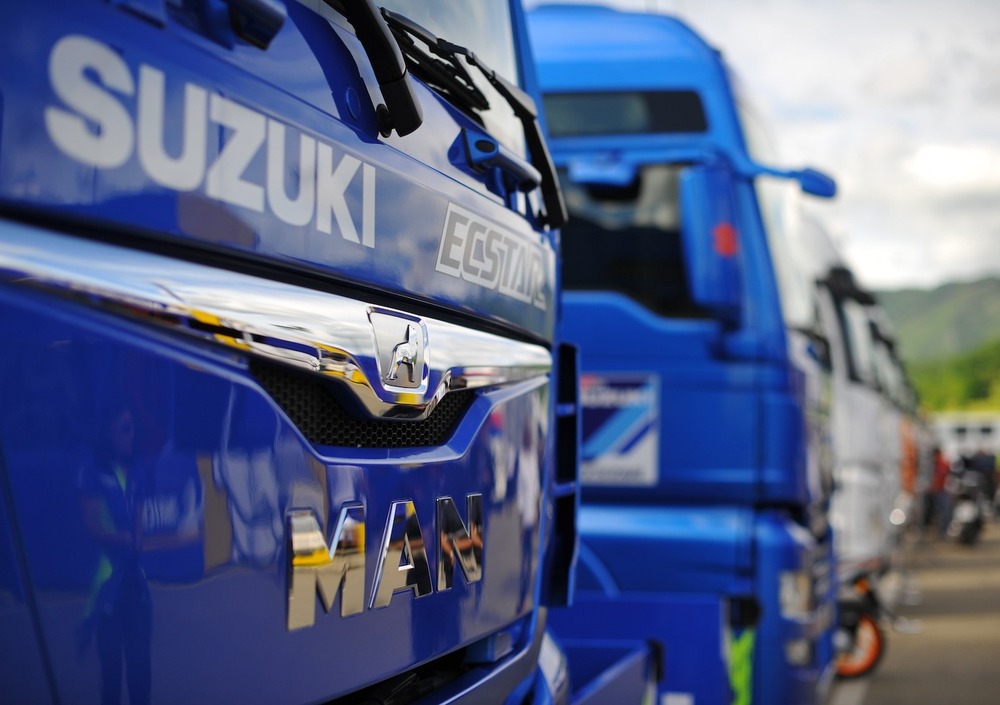 In sostanza, hospitality a parte, Suzuki porta, di circuito in circuito, quattro camion. Due sono i cosiddetti camion “tecnici” - i tir che trasportano il materiale che serve ai meccanici per allestire i box e per operare sulle moto, oltre alle moto stesse - mentre altri due trasportano tre container e una gru.
