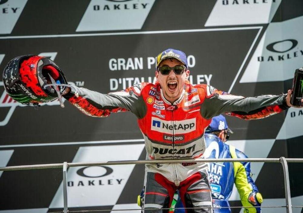 Dopo una stagione 2017 molto deludente, chiusa al settimo posto, Jorge Lorenzo svoltò improvvisamente in coincidenza con l’annuncio della rottura con la Ducati. Bizzarro, dopo aver raccolto solo sedici punti in cinque gare, il 3 giugno al Mugello il maiorchino, allora trentunenne, conquistò la prima delle sue tre vittorie con la rossa: segnato il secondo tempo in qualifica dietro a Rossi (Dovi settimo), trionfò rifilando distacchi pesanti a Dovizioso e a Valentino saliti con lui sul podio. Il cinque volte campione del mondo replicò poi immediatamente dopo a Barcellona e vinse ancora in Austria. Concluse la stagione al nono posto e quindi passò alla Honda.