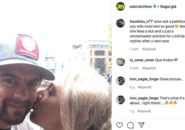 Sposatissimo e con famiglia al seguito anche Cal Crutchlow, con il pilota del Team di Lucio Cecchinello che in ogni intervista spende parole anche per sua moglie Lucy Heran, una tipa tosta che gli ha vietato il Tourist Trophy. “Mi piacerebbe provare il TT - ha detto il pilota inglese in una recente intervista -. Ma mia moglie Lucy chiederebbe subito il divorzio”.