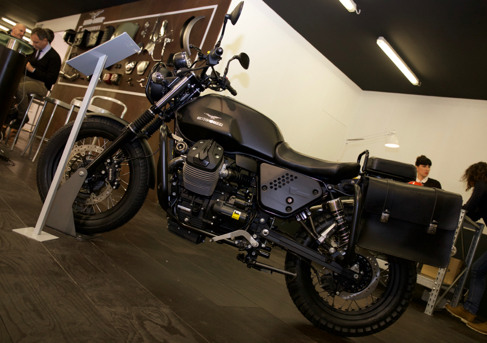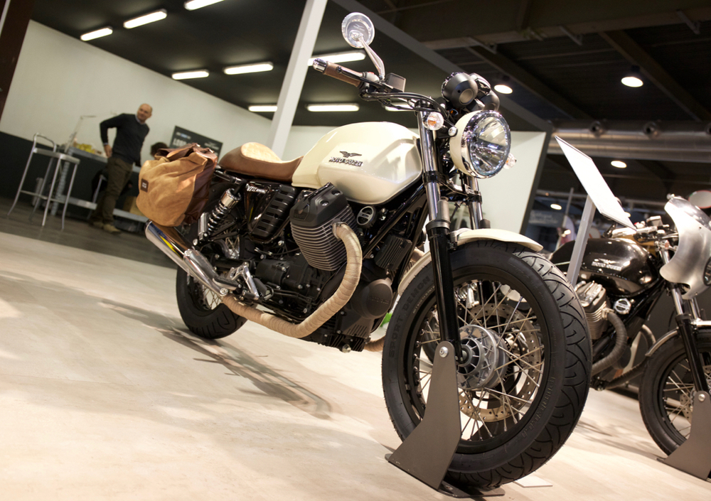Nell’ambito di una manifestazione quasi esclusivamente dedicata alle moto custom e alle special, Moto Guzzi partecipa quale prima attrice nel campo della personalizzazione. La base ideale per realizzare una special con l’Aquila sul serbatoio è la nuova V7-II nei tre modelli Stone, Special e Racer, per i quali Moto Guzzi ha presentato idee di personalizzazione eccezionalmente ricche e diversificate con oltre 120 pezzi di pregiata fattura, tutti quanti omologati e diversamente combinabili tra di loro.