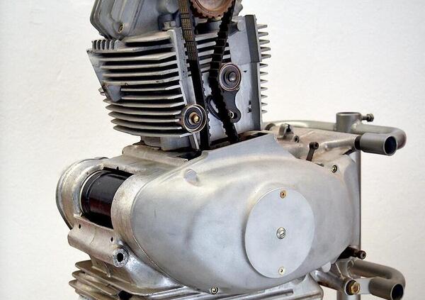 Sembra che si trattasse di un motore più che valido ma contemporaneamente era stato realizzato un altro 350, con cinghia dentata posta sul lato destro, che andava bene anch’esso e che presentava il vantaggio di avere un costo di produzione minore. Era infatti realizzato in base al principio della modularità costruttiva. Non solo impiegava alcuni componenti che venivano utilizzati anche sul nuovo modello Pantah ma, cosa più importante, diversi suoi componenti potevano essere lavorati sulle stesse macchine utensili impiegate per tale bicilindrico.