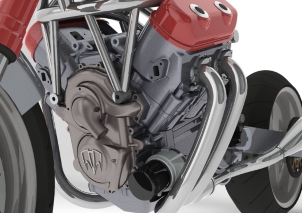Il cuore della moto è il V4 raffreddato a liquido, a due valvole, da 1.650 cc, studiato dalla Katech. Azienda che non scherza affatto in quanto a potenza dei propri motori, già nota per aver sviluppato quello della Chevy Corvette Z06 da 500 cavalli.