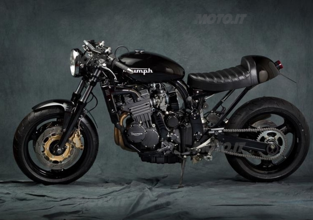La carrozzeria è stata creata appositamente da un artigiano che l’ha prodotta sulla base dei disegni originali di Mr Martini. Tutto carbonio verniciato di nero. Anche la grafica del logo Triumph è stata rivista e ridisegnata, mentre il colore è frutto di un’accurata ricerca storica. Passando alla ciclistica, le modifiche maggiori apportate al telaio sono nella parte posteriore. La coda è stata un po’ accorciata e snellita, ma tutte le misure rimangono quelle originali.