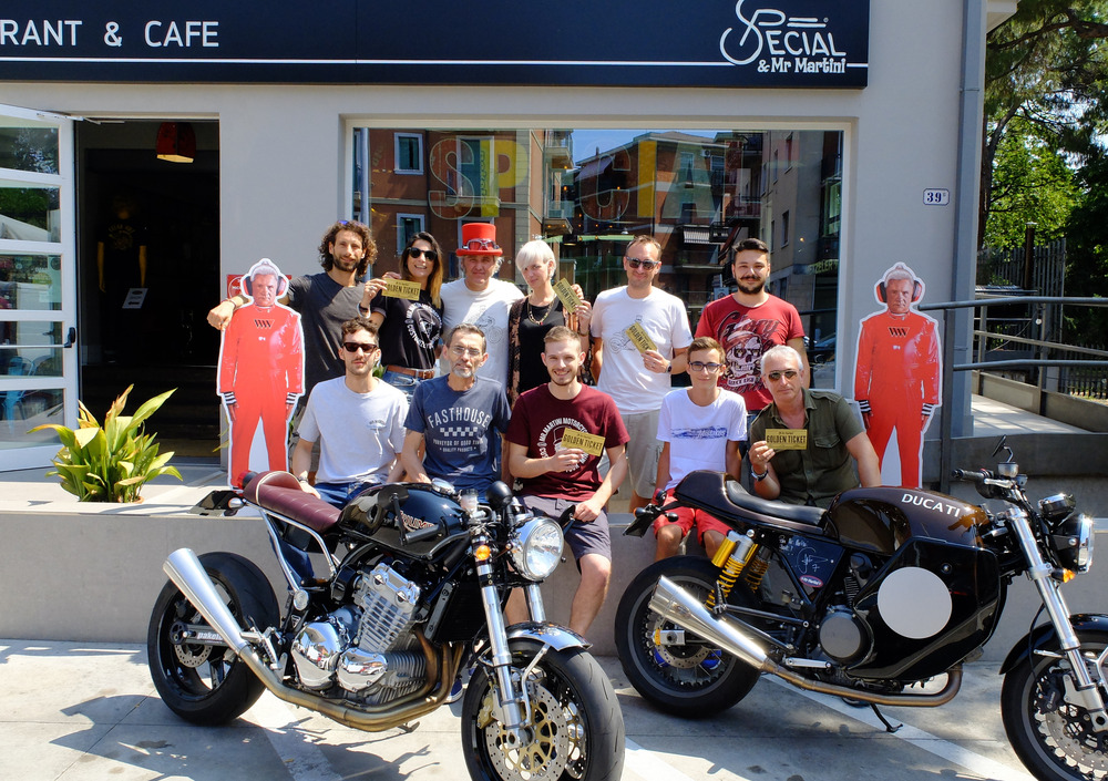Ecco perchè l'ultima trovata del team ha raccolto risposte positive ed entusiaste da parte degli appassionati: ispirandosi a Willy Wonka Martini ha nascosto in alcuni pacchetti destinati ai clienti del suo store online cinque Golden Ticket, praticamente le chiavi per aprire l'officina, lo showroom, il locale di Verona e con essi, parte del mondo Mr Martini.
