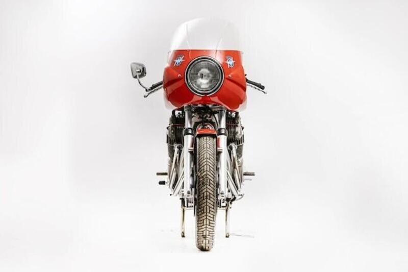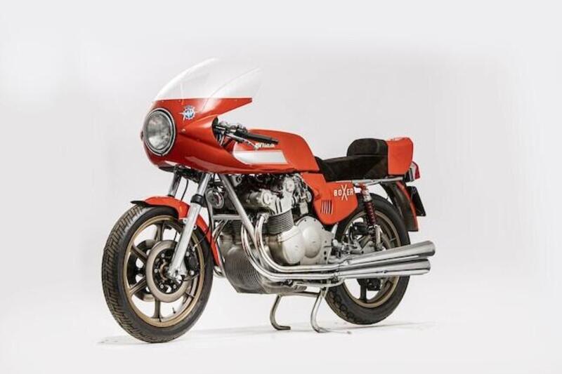 Stiamo parlando della MV Agusta Boxer del 1977, una delle due vendute in U.K. prima che Ferrari reclamasse l'uso dello stesso nome per una sua vettura e, conseguentemente, MV cambiasse in Monza il nome del modello. In più, come riporta il sito Bonhams nel quale sono visibili i lotti e nel quale sono ricavabili le notizie sulle moto in vendita, pare che proprio questo esemplare sia stato dato in uso a Phil Read: il sette volte campione del mondo e pilota per la stessa MV Agusta ne parlò in termini entusiastici.