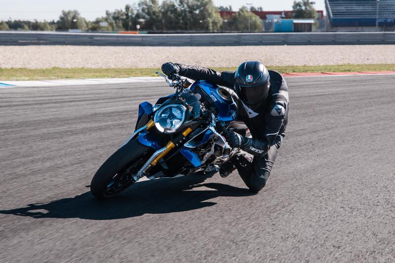 La colorazione specifica della “Assen”, incentrata su Blu Nordico, Argento Ago e oro, caratterizza questa versione speciale dove troviamo anche leggerissimi cerchi in fibra di carbonio Rotobox, che grazie alla tecnologia costruttiva proprietaria sfoggiano razze sottilissime. Fibra di carbonio anche per tante altre parti: le paratie che proteggono i collettori di scarico sui due lati della moto, tutti gli elementi stilistici e funzionali a corredo del gruppo ottico anteriore, come anche i pannelli nella zona del serbatoio.