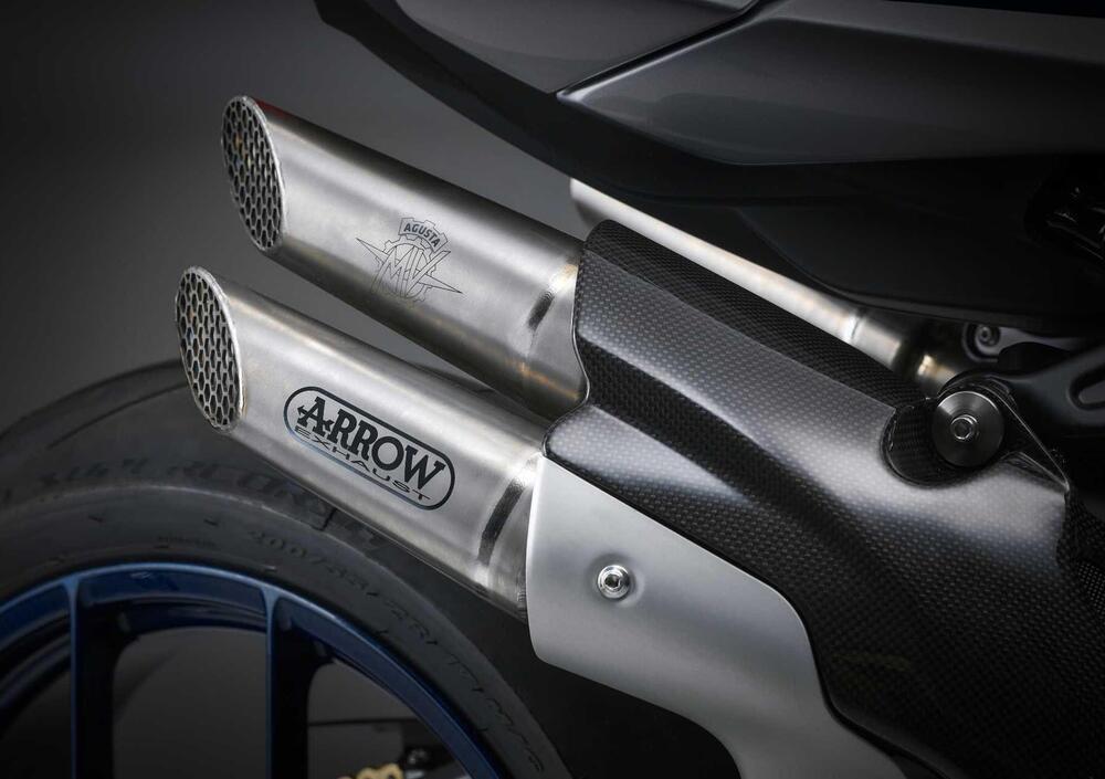 La Brutale 1000 RR Assen viene consegnata con un Racing Kit a corredo: più potenza e meno peso, oltre che ulteriore esclusività. Troviamo nel kit i terminali di scarico Arrow in titanio completi di centralina dedicata per arrivare fino alla potenza di 212 CV a 13.600 giri, leve freno e frizione lavorate CNC e di colore nero, cover in fibra di carbonio per la sella del passeggero e tappo in alluminio, quest'ultimo peculiare grazie alla doppia colorazione dorata e nera. In dotazione anche il telo coprimoto e il certificato di autenticità.