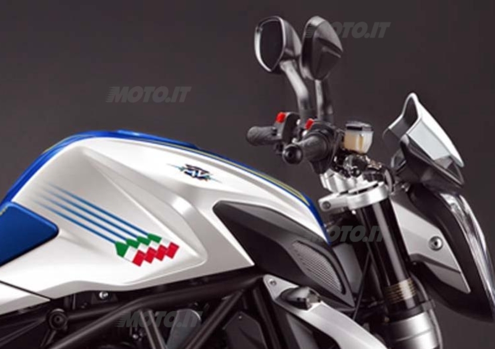 Si tratta di una versione speciale dell’ultima nata in casa MV, la bellissima Brutale 675, nuovo riferimento per la categoria grazie a prestazioni, tecnologia e design. E’ unica nel suo genere e traccia un ideale parallelismo tra la perfezione della barca che solca l'acqua e la due ruote varesina protagonista sulla strada. La livrea è ispirata ai colori della Federazione Italiana di Canottaggio e al suo logo, che campeggia sulla parte superiore del serbatoio, mentre lateralmente sono disposti quattro remi tricolore. Altri particolari identificativi sono i cerchi bianchi con banda azzurra e logo MV sul canale esterno; la sella azzurra rivestita con due diversi tessuti tecnici e cuciture giallo/oro; il compatto cupolino sopra la strumentazione con colorazione dedicata, bandiera italiana e logo del modello; infine, sui fianchetti, la scritta “Varese 2012” a ricordo della manifestazione.
