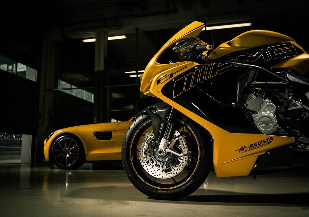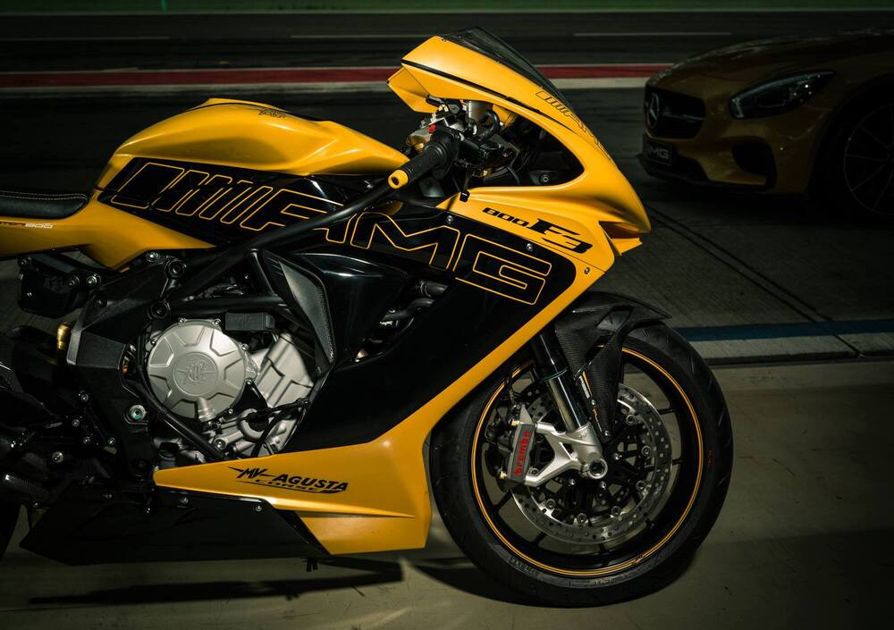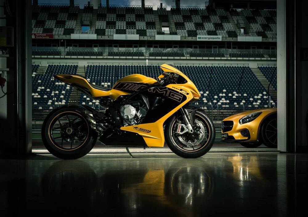 MV abbandona il classico colore rosso e grigio, caratteristico del marchio della casa di Schiranna, per lanciare una particolare colorazione gialla, AMG Solarbeam, che richiama la più sportiva Mercedes-AMG GT. A fare da contrasto il nero sul lato della carena e sul serbatoio, dove spicca in bella vista il logo AMG, presente anche sul cupolino. Parafango in carbonio, tappo del serbatoio racing e cuciture gialle sul sellino del guidatore e passeggero vanno ad aggiungere quel tocco di stile in più.