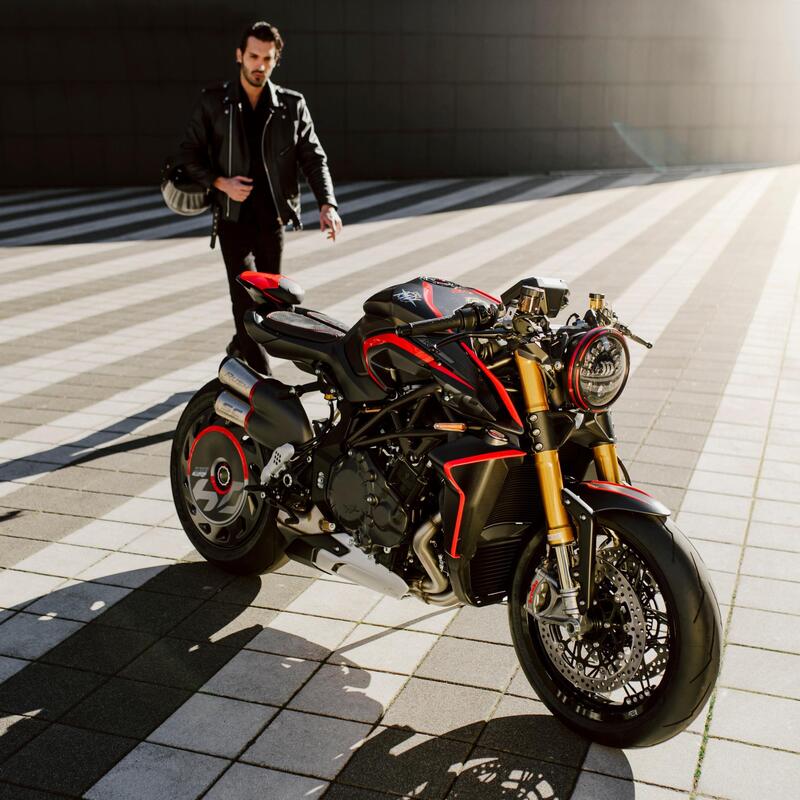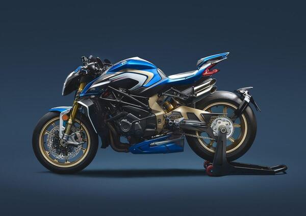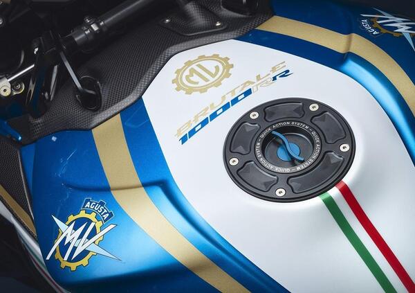 La colorazione bianca azzurra, con il tricolore italiano quale elemento grafico su serbatoio, parafango anteriore e coda monoposto, ricordano la serie speciale Brutale 910R Italia che venne realizzata in occasione della vittoria azzurra ai mondiali di calcio 2006 in Germania.