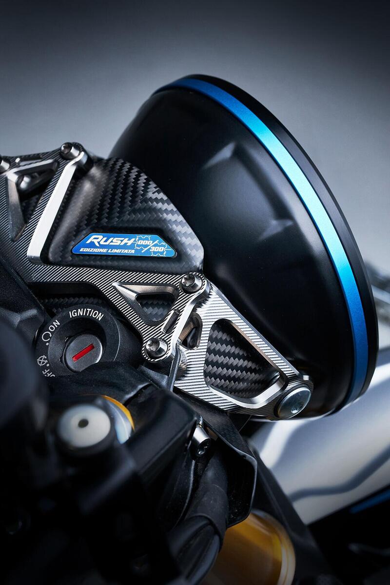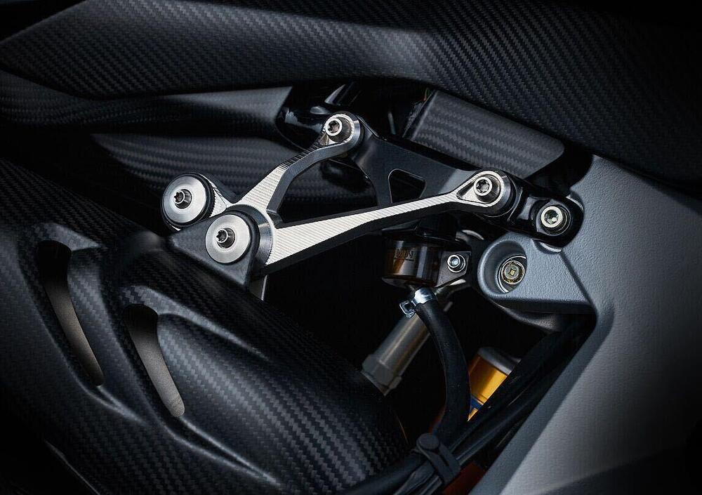 Componenti in Titanio: Dallo scarico Arrow slip-on (che porta la potenza a 206 CV) ai supporti del faro, fino al tappo del serbatoio e al supporto del cruscotto.