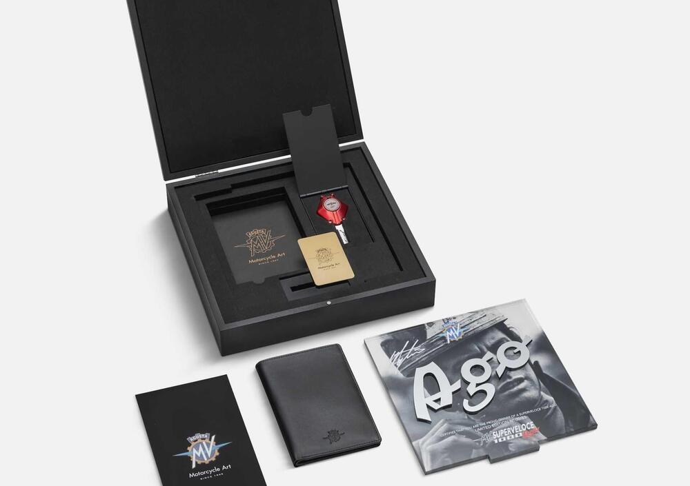 Ogni cliente della MV Agusta Superveloce 1000 Ago, come per tutte le edizioni limitate del marchio, riceverà un kit esclusivo che ne esalta l'unicità e la cura per i dettagli. Questo corredo speciale include:
