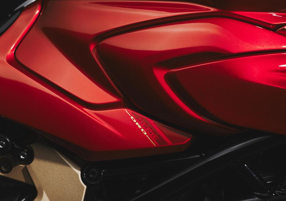Prodotta in serie limitata assemblata a mano e numerata, la Superveloce 1000 Serie Oro evolve il concetto di moto Neo Retrò iniziato con la versione 800. Sviluppata sulla piattaforma della naked Brutale 1000 RR, la Superveloce ne utilizza il telaio, il monobraccio e naturalmente il motore quattro cilindri in linea. Esteticamentela Superveloce 1000 prende spunto da un modello da corsa degli anni '70, la MV 500 che nel 1972, 50 anni fa, ha portato al debutto le prime ali con funzione aerodinamica.