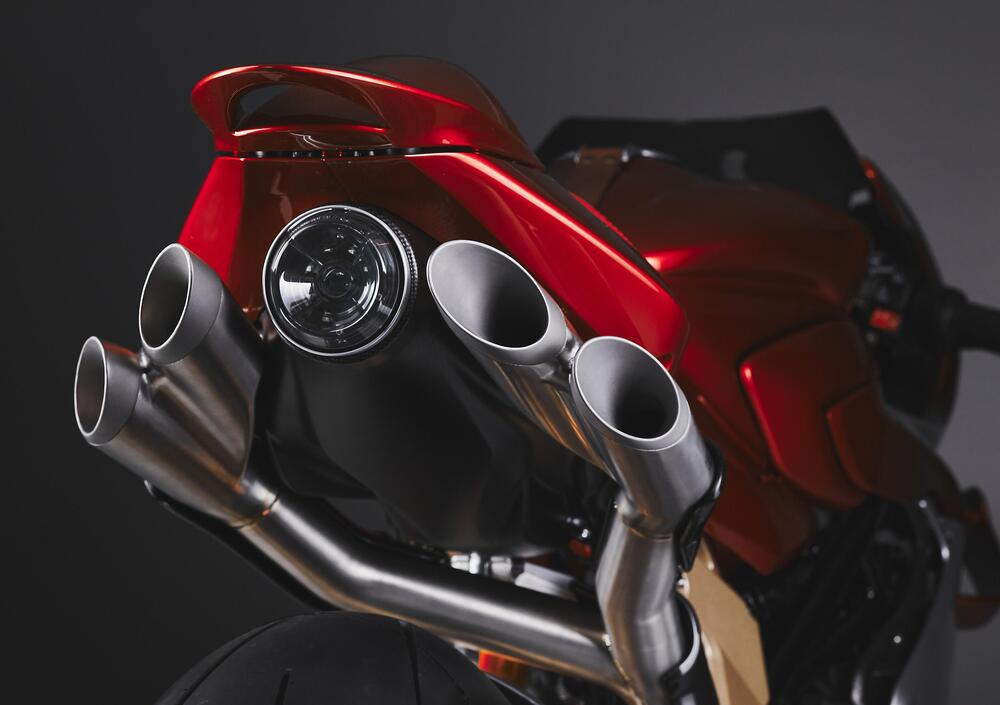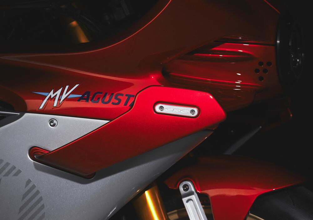 Il quattro cilindri di 998 cc esprime 208 CV a 13000 giri/min (212 CV con kit racing) e 116,5 Nm a 11000 giri/min, ed è dotato di contralbero che gira a doppia velocità rispetto all’albero motore primario, con l’obiettivo di eliminare le vibrazioni in alta frequenza e rendere più facile e rapido l’inserimento in curva. In termini numerici, MV Agusta dichiara di aver ridotto le vibrazioni del 54% a 14000 giri/min.