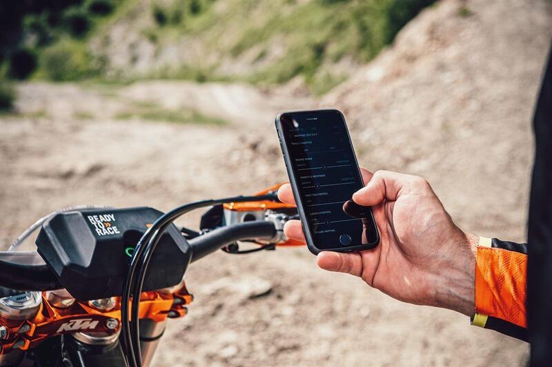 Occorre prima di tutto installare sulla moto la Connectivity Unit (di serie sulla SX-F 250 TLD), disponibile nel catalogo KTM PowerParts al prezzo di 169 euro. Dopodiché si è pronti per intervenire rapidamente su alcuni parametri della moto.