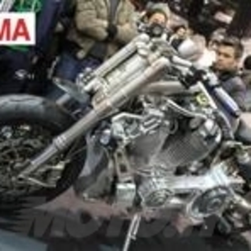 La carrozzeria, che sarà solo leggermente modificata rispetto a quella del prototipo, è costituita da serbatoio e sellino (con portaoggetti) in alluminio realizzati a mano, con carenatura in vetroresina. Mentre il telaio del prototipo che vedete in foto - e che potrete ammirare al Salone - è quello della Replica solo leggermente modificato. Chiaramente la versione definitiva avrà un telaio realizzato ad hoc, sempre in tubi di acciaio ma con saldature in ottone a vista (molto cool!), studiato per l’alloggiamento della scatola filtro originale: le quote caratteristiche parlano di 25° di inclinazione del cannotto di sterzo e 105 mm di avancorsa. Il forcellone posteriore definitivo sarà in lamiera di alluminio piegata e con saldature in vista, con una coppia di ammortizzatori Öhlins; la forcella è Paioli (naturalmente tradizionale), le ruote sono a raggi con cerchi in lega leggera e, dulcis in fundo, gli scarichi definitivi saranno a tromboncino come quelli in foto, anche se ovviamente sotto al motore comparirà il classico scatolotto con catalizzatore.