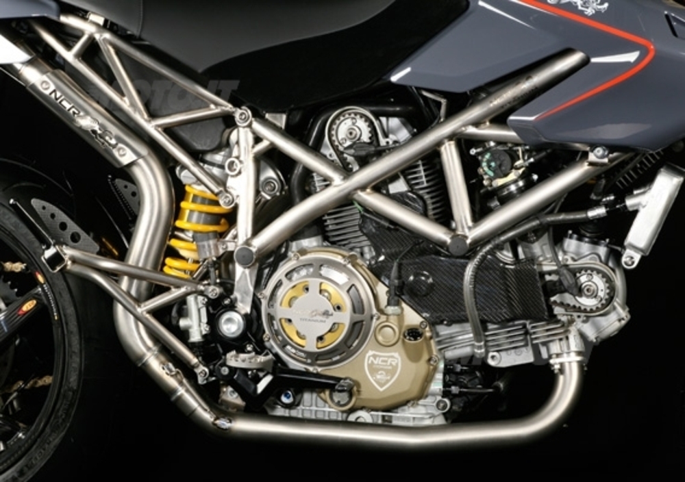 Il telaio, composto dal telaio centrale e dal telaietto posteriore, è stato ridisegnato e prodotto interamente in TITANIO grado 9. Il peso complessivo del telaio centrale è di soli 4,8 Kg mentre il telaietto posteriore pesa oltre 2 Kg in meno rispetto a quello originale Ducati.