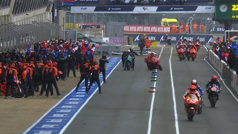 Certo, Dorna ha pensato soprattutto allo spettacolo quando ha introdotto insieme alla FIM per la sola MotoGP (nelle altre classi c’è una sola moto per pilota…), la regola del flag to flag. Carmelo aveva in testa le televisioni e i loro palinsesti, lo spettacolo deve avere un orario certo per l’inizio e per la fine.