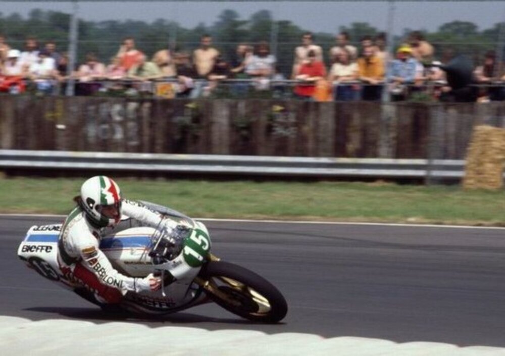 Vidi trionfare Graziano Rossi in 250, e Lazzarini nella 50, e soprattutto Virginio Ferrari battere Sheene dopo un duello favoloso che la Rai trasmise nella sua prima diretta dall’estero. Fino a quel momento, soltanto il GP delle Nazioni passava live. L’ultimo giro della 500 fu da brividi, Ferrari aveva un cuore di leone, quell’anno fu secondo in classifica, tutto massacrato in voli ad alta velocità. Il re della 500 invece veniva direttamente da Marte: era Kenny Roberts, classe 1951, detto appunto il marziano anche se era di Modesto, California. Nel ’74 aveva esordito in 250, solo Assen, e pochi lo ricordavano. Con la Yamaha 500 GoodYear giallo-nera tornò bellicoso nel ’78 e vinse subito, spodestando Barry Sheene, e fu quarto nella 250. Poi si sarebbe concentrato sulla mezzolitro dominando anche le due stagioni successive. Kenny, che fenomeno! Dislessico da ragazzo, faticava anche a leggere, ma un genio. Il primo a usare uno slide fatto in casa, uno che studiava le cose, ancora oggi un fenomeno dell’intraversata, una vera forza della natura.