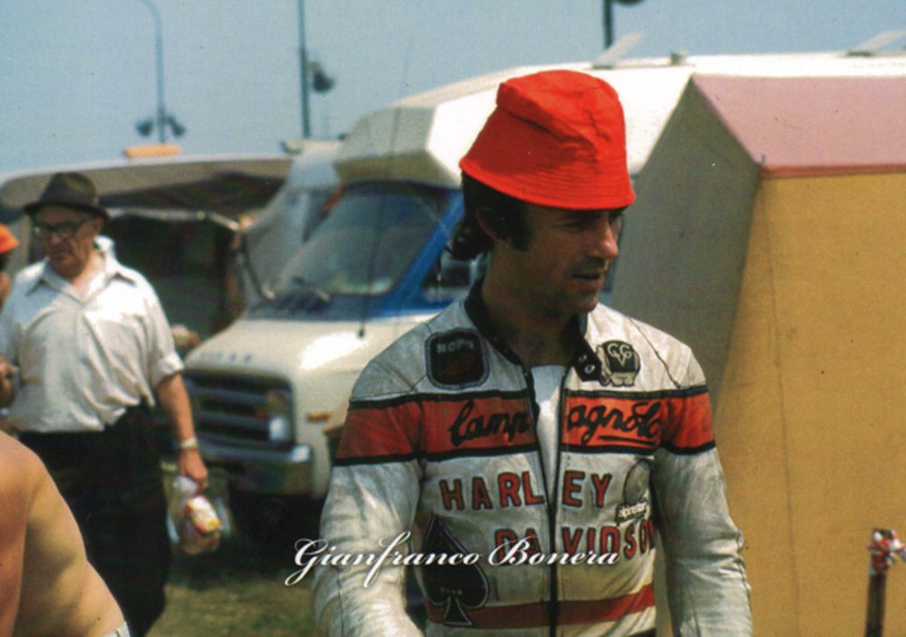 Chiudo con un amico che non c’è più. Walter Villa è scomparso giovane, dieci anni fa ed era uno dei più forti piloti italiani di sempre. Modenese, tecnicamente molto preparato, simpatico e spiritoso, lo chiamavamo il reverendo per la pancetta, il gusto della buona tavola (i suoi amici di Castelnuovo Rangone portavano i migliori salami del mondiale) e la saggezza da ridere che spargeva volentieri; era rimasto coinvolto nel terribile incidente di Monza nel ’73: gravissimo, fu salvato dal dottor Costa per un pelo, e allora è stato uno dei più attivi a battersi per la sicurezza quando non era vantaggioso mettersi contro la FMI e i gestori delle piste. Ago, per dire, non lo faceva. Walter ha vinto il titolo nel ’74, ‘75 e ‘76 con l’Harley-Davidson 250, e ha fatto doppietta con la 350 nell’ultimo anno. Ventiquattro vittorie. Ma ha corso anche con la Benelli, poi con le Triumph, e per anni è stato collaudatore per la Pirelli, instancabile e prezioso.