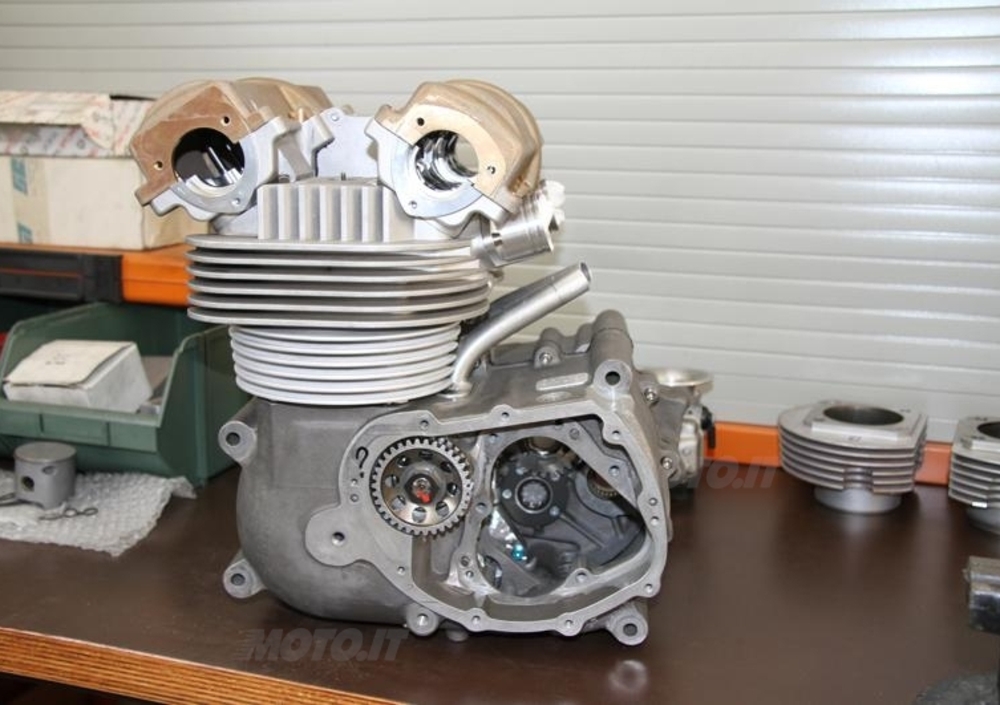 “Il progetto bicilindrico originale – snocciola Roberto per la centesima volta ma con lo stessa pazienza della prima - era nato nel ’64 o anche più in là: era una 250 che andò in pista con Zubani, e che fu terza al TT con Alberto Pagani. Poi divenne 350, poi credo intorno ai 400, poi finalmente 500, per la prima volta con le molle coperte. Ecco dove nasce la nostra replica, sulla base di quella usata da Bertarelli nel 1968 dopo il titolo italiano del ‘67 di Angelo Bergamonti”.