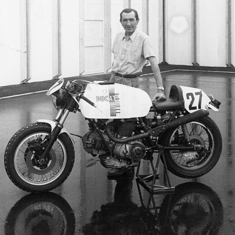 Era nato il 10 settembre del 1920, il famoso progettista delle più belle Ducati, ed ora ricorre il centenario della nascita. Originario di Lugo di Romagna come Francesco Baracca, a trentaquattro anni entrò in Ducati e ci rimase tutta la vita, di fatto fino al ‘95. Era stato prima professore di meccanica e disegno all’istituto tecnico, poi progettista con Mondial e Ceccato. Tra le sue più importanti creazioni firmate alla Ducati, i primi monoalbero a coppie coniche da cui derivarono le 125 GP desmodromiche che sfiorarono il titolo mondiale, le prime Desmo stradali, il bicilindrico a L, il comando a distribuzione a cinghia e i primi telai a traliccio. Il sistema desmodromico esisteva prima di Taglioni, ma con lui è diventato vincente sulle moto stradali e nelle corse.