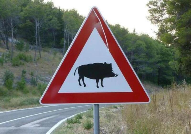 Ciao a tutti! Domenica è successo anche a me: sette cinghiali che spuntano dal bosco all’improvviso e attraversano di corsa la strada, due belli grossi e gli altri di media mole. Se ci prendono ci buttano a terra, non c'è storia, e non era l'alba, il sole era già alto. Per fortuna andavo molto piano: ero appena uscito da un tornante in discesa, la provinciale è lenta e l’asfalto era umido. Così abbiamo potuto fermarci tranquillamente a guardare lo spettacolo dieci metri davanti a noi; ma in questo autunno che al nord è ancora tiepido nelle ore centrali della giornata, quanti motociclisti rischiano l’incidente con animali selvatici, e quanti ci restano ogni anno, sull'asfalto?