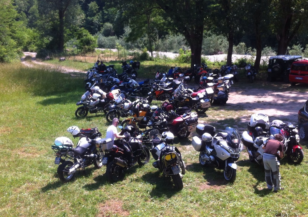 L'appuntamento è alle 8.30 a Piacenza al villaggio Nonstop24 in un’area dedicata a tutti i 105 partecipanti, più o meno organizzati. Il paddock era per lo più pieno di moto moderne, in prevalenza KTM e BMW superaccessoriate. Insomma, gente che fa sul serio! Oltre ai GPS di ultimissima generazione e telecamere fissate su supporti e caschi, alcune moto erano dotate di road book.