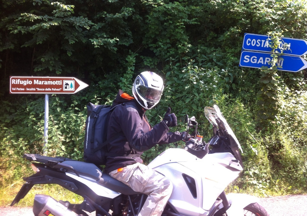 Lungo la traccia incontriamo Cesare Zennaro, un ragazzo in sella di una 1290 Adventure, già a prima vista più attrezzato degli altri. Cesare è un grande appassionato di turismo, con profonda cultura motociclistica e un sano spirito di gruppo. Era chiaro che fosse alla Nonstop24 per arrivare davanti, ma unendosi a noi ha dovuto alzare un po’ la media, perché, nonostante l’incontro fortuito sapevamo tutti che avremmo passato in ritardo il check di Bettola.