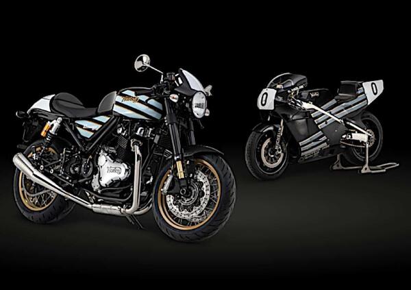 Ma se hai il palato fine (e qualche capello bianco) sono certo che ricorderai anche la mitica 588, la moto da gara con il motore Wankel! Era spinta appunto da un Wankel con doppio rotore raffreddato a liquido da 588 cc e fu una bestia unica progettata ancora una volta per le corse e in particolare per le road race. Da lei derivò la Norton F1 che ne era in sostanza la versione stradale ed è oggi una vera rarità. Le RC588, RCW588 e NRS588 tra la fine degli anni Ottanta e i primi anni Novanta vinsero sia nelle Superbike britanniche sia al TT dell'Isola di Man. Indimenticabile fu quella di Steve Hislop proprio al TT del 1992. A loro e alla loro caratteristica colorazione nero e grigia è dedicata la Commando 961 LE "588". Oltre alla livrea, troviamo motore nero, pedane nere, piastre nere, sospensioni Öhlins nere, paracatena in fibra di carbonio, cupolino in fibra di carbonio e cerchi dorati. Il coprisella in tinta porta anche uno stemma commemorativo del 125° anniversario, recante il logo dell'edizione limitata.