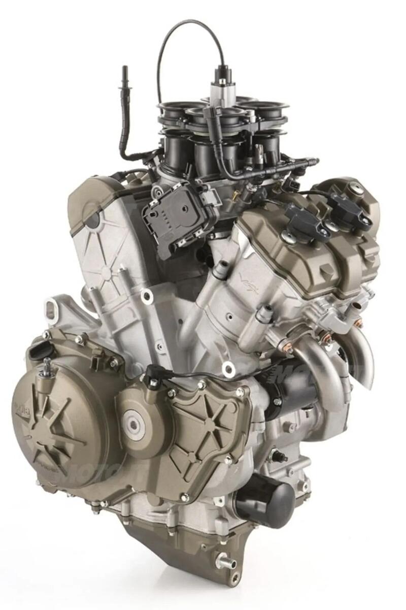 Scendendo più in basso troviamo un nuovo albero motore, con perni dal diametro ridotto (36 mm), su cui lavorano bielle Pankl più leggere delle precedenti (-100 g l'una). Il basamento monoblocco in alluminio con canne cilindro integrali non cambia, mentre è inedito il semi basamento superiore, che ora è realizzato attraverso un metodo di fusione in conchiglia che lo rende più leggero e robusto al tempo stesso.