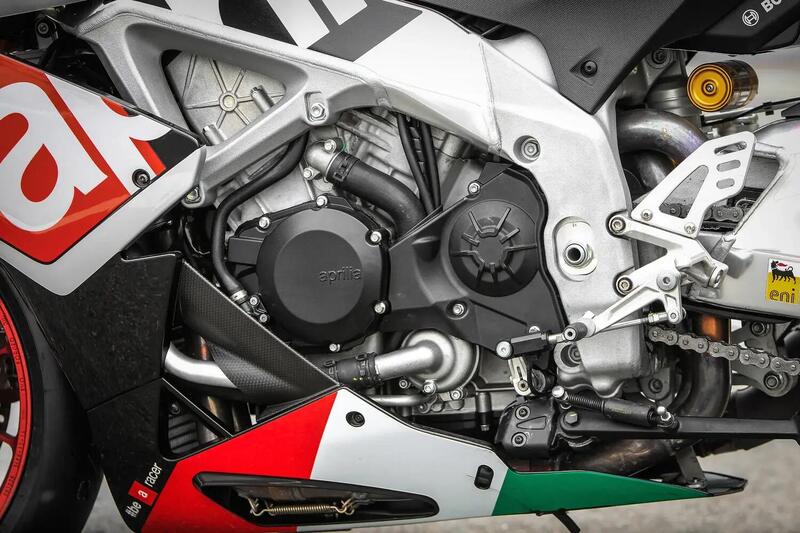 Il V4 da 65°, evoluto in maniera costante sin dalla prima versione da 175 cv, nel 2019 ha ricevuto una bella cura ricostituente con un aumento della cilindrata della RSV4 fino a 1.078 cc grazie ad un incremento dell'alesaggio da 78 a 81mm, mentre la corsa è rimasta invariata (52,3mm), naturalmente è cambiata anche la fasatura e i condotti di aspirazione hanno un profilo diverso, e questo consente di arrivare a erogare 217 cv a 13.200 giri, con una coppia che cresce del 10% su tutto l'arco d'erogazione, e un picco massimo che raggiunge i 122 Nm a 11.000 giri. Il cambio estraibile a sei rapporti ha visto cambiare la lunghezza degli ultimi due, quinta e sesta.