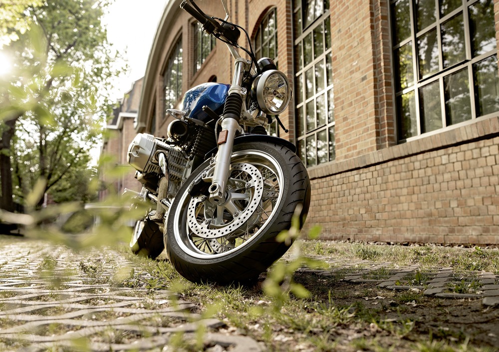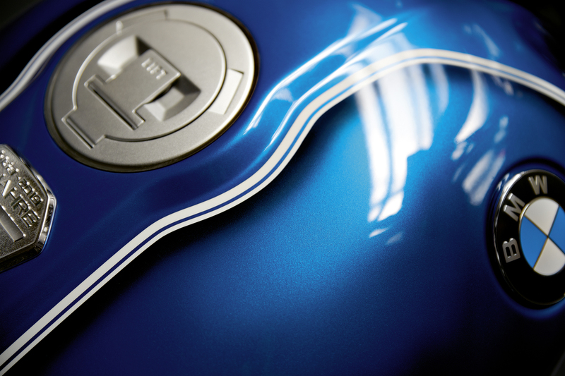 La nuova R nineT/5, che diventa il sesto della famiglia heritage, si mostra con classica colorazione blu, filetti bianchi stesi a mano e paraginocchia in gomma sul serbatoio, soffietti in gomma sulla forcella tradizionale e le ruote a raggi. I retrovisori e lo scarico cromato ricorda il disegno dell’epoca e peccato che per ragioni di spazio non sia stato possibile avere i due silenziatori simmetrici come un tempo.