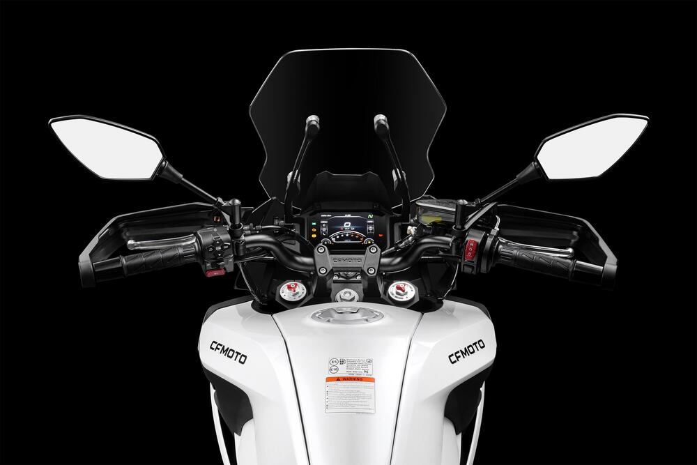 Lo schermo TFT a colori da 5” è regolabile su cinque livelli della luminosità, inoltre è possibile collegare facilmente lo smartphone e sfruttare il potenziale della App dedicata CFMOTO Ride per tenere sottocchio i dati della moto e molto altro. Attraverso i comodi blocchetti sul manubrio è poi possibile impostare le modalità di guida.