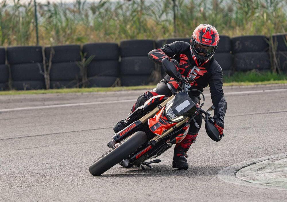 Infine, l’ABS dell’Hypermotard 698 Mono ha anche il livello 4, sviluppato per le situazioni di poca aderenza per garantire la massima stabilità e sicurezza. È associato di default al Riding Mode Wet.