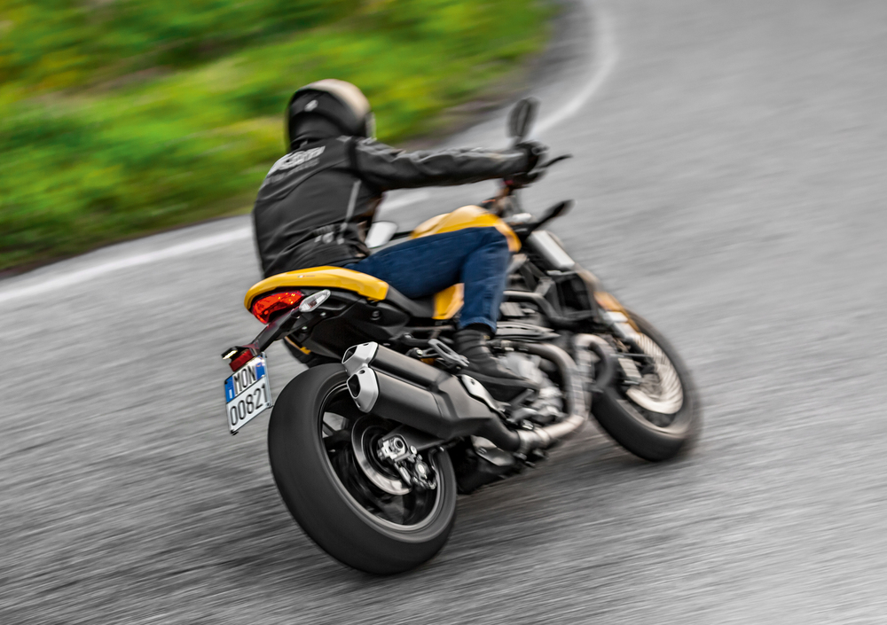 Nella gamma cromatica, oltre all'immancabile rosso brillante e al nero opaco, ritorna il giallo Ducati che comparve sul primo Monster 900.