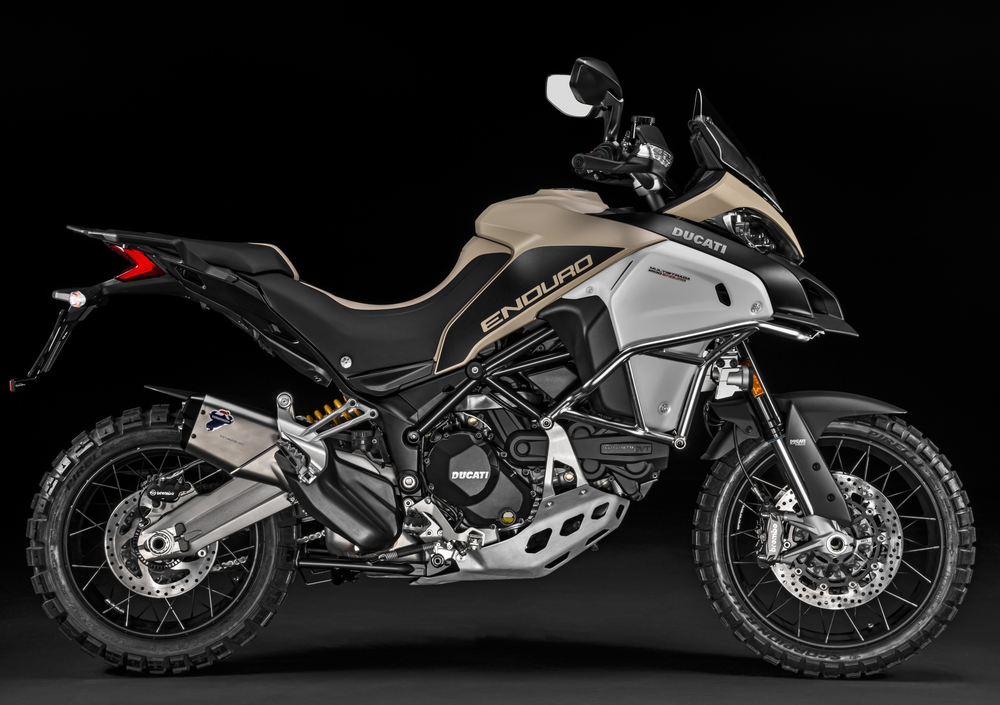 Una nuova versione si affianca alla raffinata Ducati Multistrada 1200 Enduro, arrivata in vendita l'anno scorso. Si tratta della Enduro Pro, che, come lascia intuire il suo nome (Ducati ha scartato l'ipotesi della definizione Adventure utilizzata dai concorrenti BMW e KTM), aggiunge una serie di accessori e una differente dotazione di base per affrontare con maggior agio lunghi viaggi in fuoristrada o comunque percorsi che contemplino l'off-road. Oltre naturalmente a offrire il look "pronta a tutto" che per molti è un plus di valore. La nuova versione sarà in vendita a luglio al prezzo di 22.990 euro, franco concessionario.