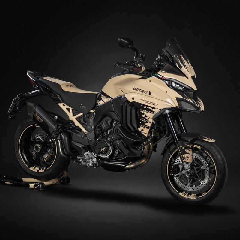 Il design della Multistrada V4 Pikes Peak, in particolare, si sviluppa partendo dagli elementi caratteristici della famiglia Multistrada V4, e integrandoli con i due elementi storicamente distintivi della Pikes Peak dal punto di vista estetico e funzionale: la ruota anteriore da 17” e il forcellone monobraccio. L’indole racing è sottolineata dalla nuova livrea “Pikes Peak”, ispirata nei colori e nelle grafiche a quella delle Ducati MotoGP, Superbike e Motocross, con tabelle portanumero sui fianchetti che accentuano il richiamo alle competizioni.