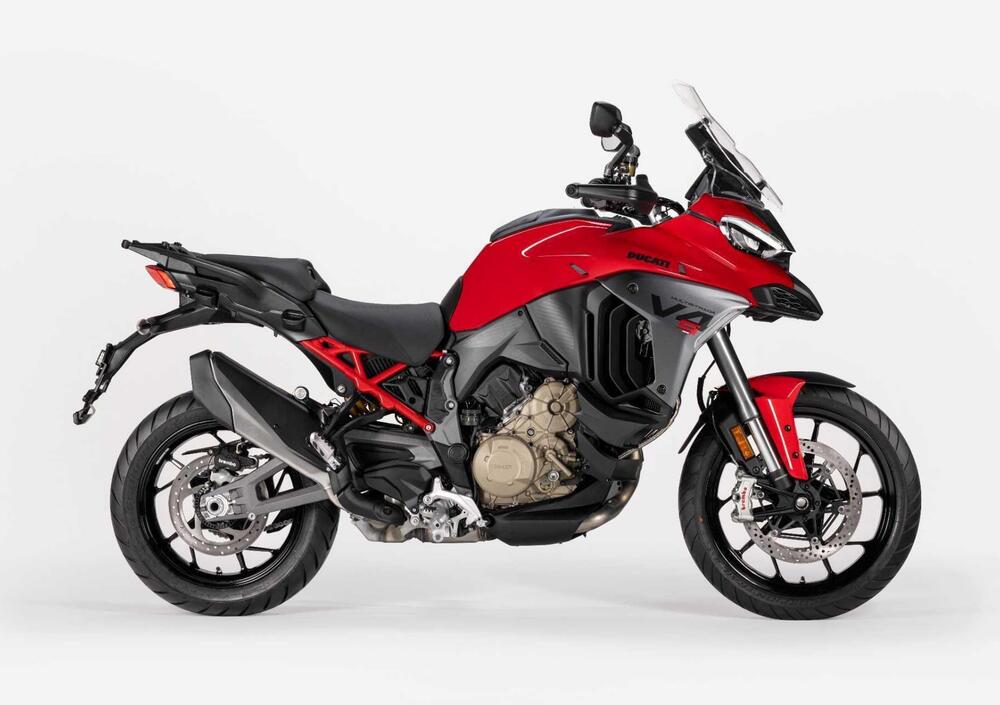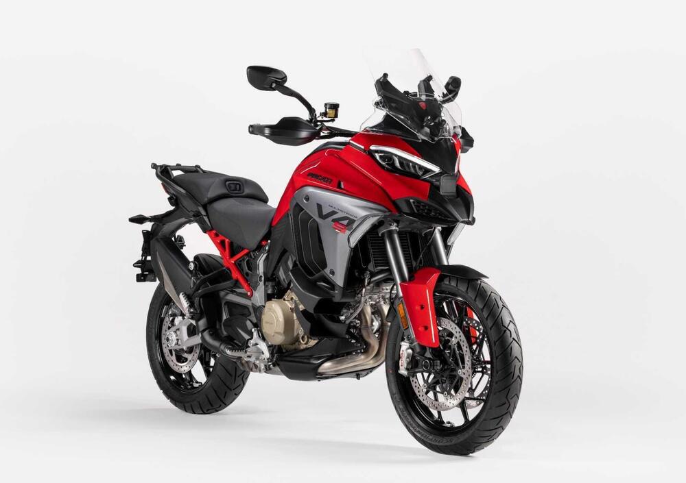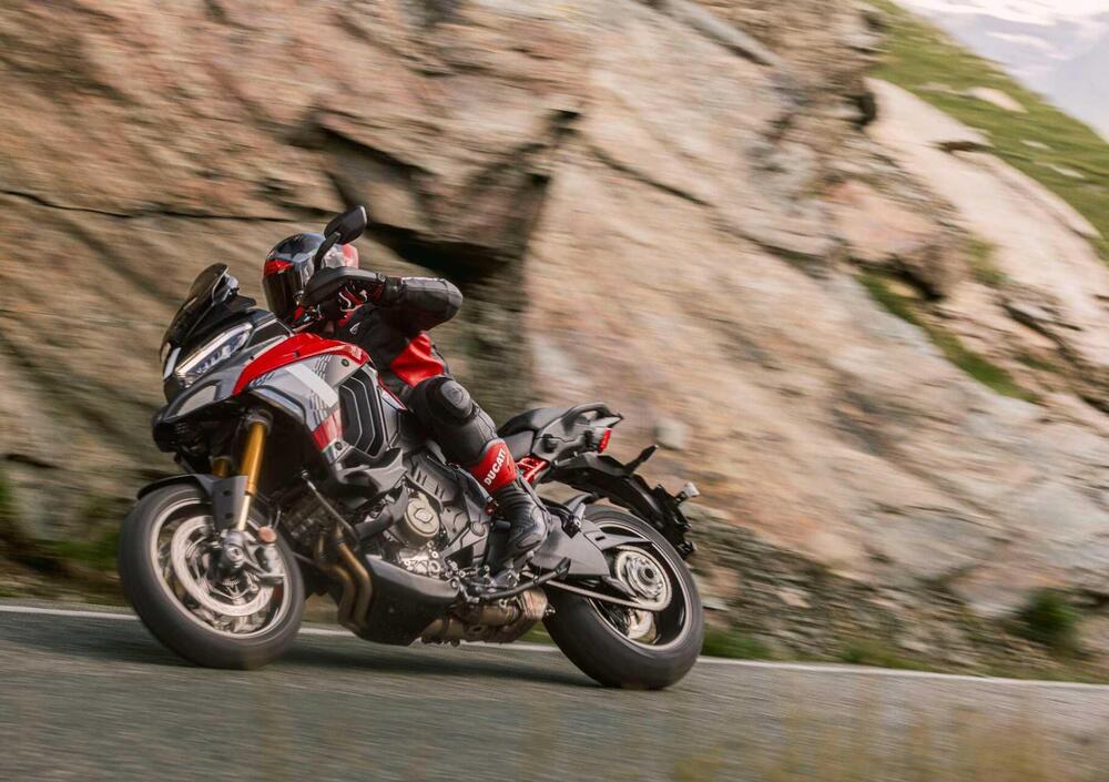 Con la nuova Multistrada V4, Ducati porta a un livello ancora superiore l’attitudine turistica di Multistrada V4, grazie a un miglior comfort per pilota e passeggero, a una maggior efficacia nella guida, anche a pieno carico, e a nuovi sistemi elettronici che la rendono più sicura e performante su ogni condizione di fondo stradale. Nella guida sportiva, la Multistrada V4 è più precisa e - sulla carta - emozionante, grazie a una ciclistica ottimizzata, all’innalzamento del perno forcellone, a una tonalità di scarico più personale e a controlli elettronici aggiornati. Il pluripremiato motore V4 Granturismo ora è in versione Euro 5+ e dotato di deattivazione estesa, le prestazioni (170 CV), l’affidabilità e i costi di gestione (intervalli di manutenzione ogni 60.000 km, Oil Service ogni 15.000 km/24 mesi, consumi ridotti del 6%) sono dettagli da non trascurare, ma ci arriveremo dopo.