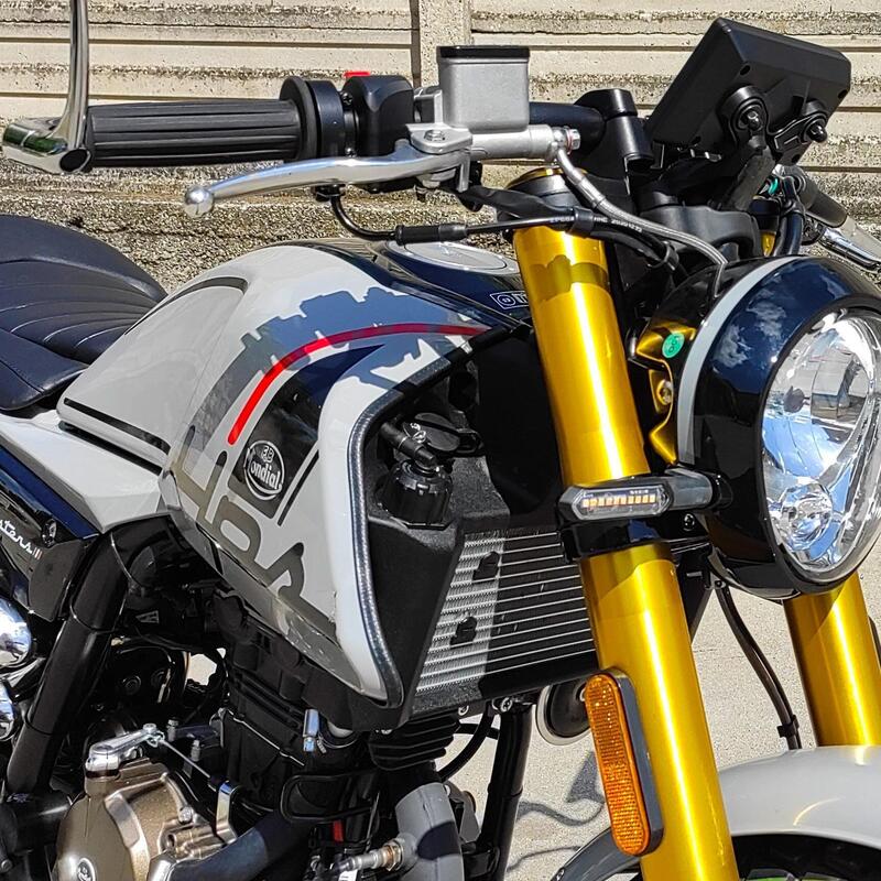 Le misure caratteristiche parlano di una sella posta a 940 mm dal suolo, 124 kg di peso in ordine di marcia, cerchi da 17 pollici con pneumatici anteriore da 100/80 e 130/70 posteriore. Alla frenata provvede un singolo disco anteriore di 300 mmdi diametro morso da una pinza flottante a due pistoncini, mentre dietro il diametro del disco passa a 220 mm e la pinza è a pistoncino singolo.