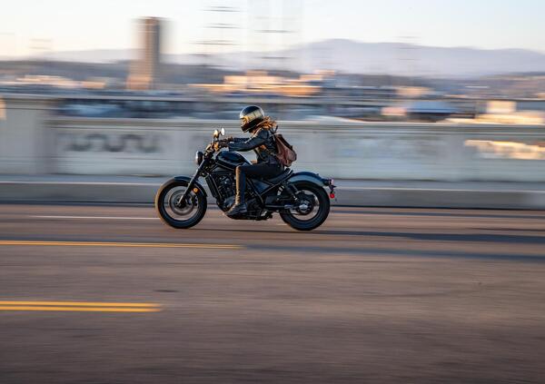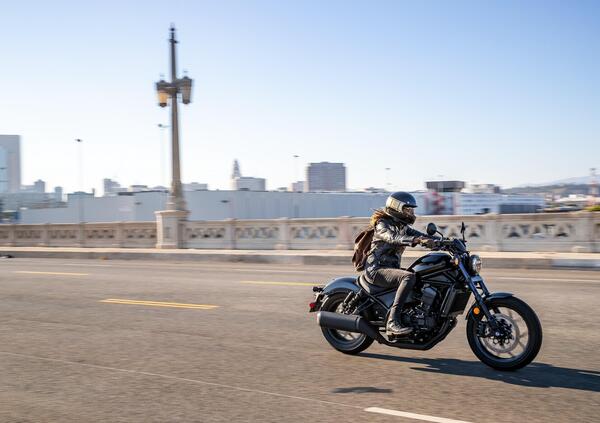 Ma partiamo dall'estetica, disegnata dallo stesso team americano autore della CMX 500 Rebel. Stile da bobber, moto bassa e allungata, stretta in zona mediana e con il serbatoio a goccia da 13,6 litri. I parafanghi sono in acciaio, il faro rigorosamente rotondo (da 175 mm) ha quattro elenti a led, come sulla versione 500, la sella è in due parti e la colorazione base prevede tanto nero opaco e lucido.