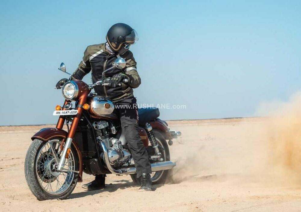 La Jawa 350 è ben disegnata, offre un nuovo telaio e il motore che cresce nella cubatura fino a 334cc., precedentemente di 294cc. Un monocilindrico raffreddato ad acqua (anche se l’alettatura retrò del cilindro non manca) capace di 22cv e 28,2Nm di coppia massima, cambio a sei rapporti e frizione antisaltellamento. Di fatto è lo stesso propulsore utilizzato dalla Jawa 350 CL Perak, ovvero la Bobber. Rispetto alla precedente 300 CL rileviamo poi ruote più grosse, 100/90-18 all’anteriore e 130/80-17 al posteriore.