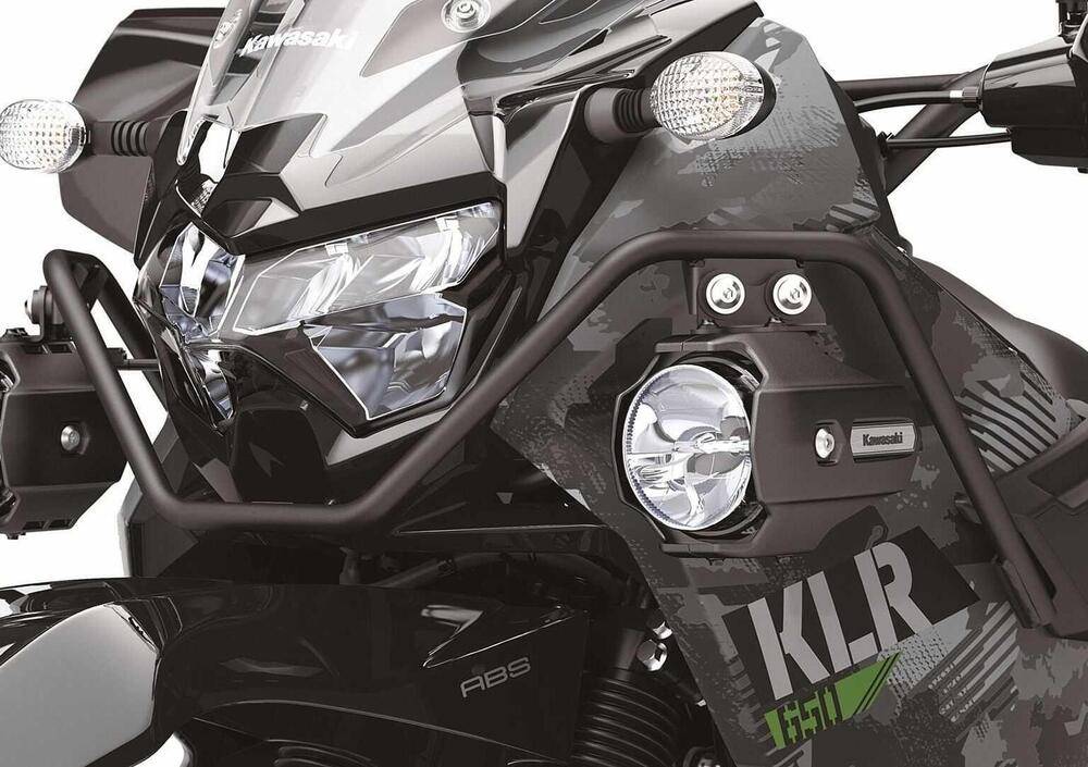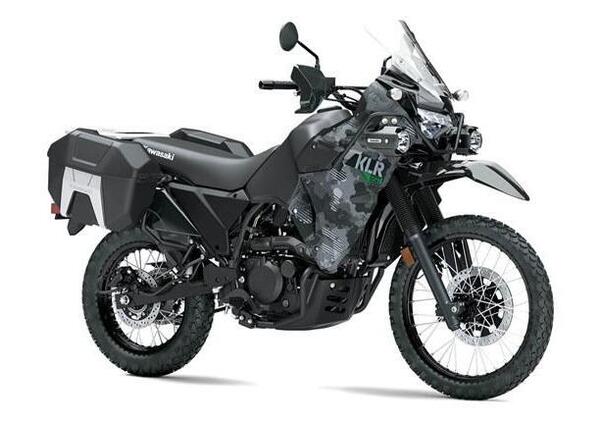 Infine la versione KLR 650 Adventure che al prezzo di 7.999 dollari offre le valigie rigide laterali, i fari fendinebbia, le protezioni su telaio e serbatoio, le prese di alimentazione elettrica e Usb, il sistema ABS e la colorazione mimetica Cypher Camo Grey.