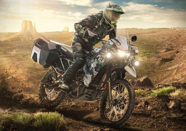 La monocilindrica KLR, assente da anni in Europa, si presenta rinnovata in molti aspetti pur mantenendo un'estetica fedele all'ultima versione prodotta.
