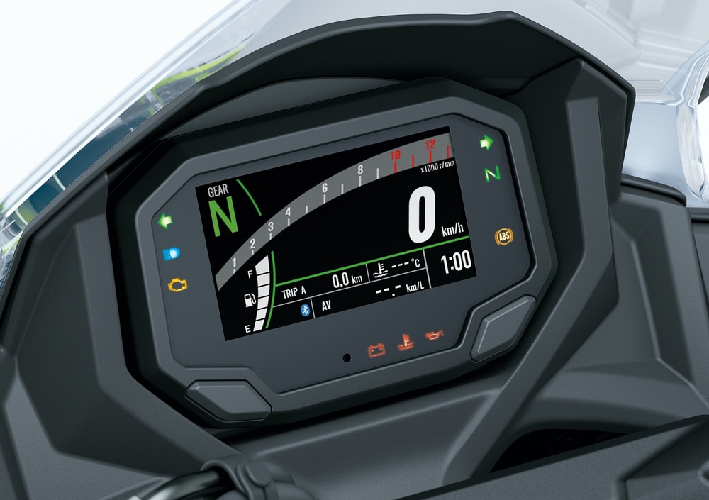 Iniziamo con lo stile, più affilato e sportivo. Il nuovo cupolino è più ampio e affilato, con una linea quindi più vicina alla filosofia Ninja e con un plexiglas più basso ma dall'angolo più pronunciato. Il doppio faro è a LED, con ogni proiettore dotato di anabbagliante, abbagliante e posizione.