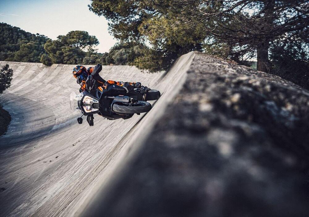 Il nuovo display TFT da 7” può essere inclinato a piacimento e ha il vetro antigraffio e antiriflesso. Il pilota può definire quattro preferiti nella schermata iniziale. Il TFT integra una nuova Connectivity Unit, che assicura una sincronizzazione rapida e affidabile del proprio smartphone collegato via Bluetooth con l’App KTM MY RIDE, che rende disponibili la navigazione turn-by-turn, la gestione delle chiamate in entrata e la playlist musicale. Il nuovo TFT è anche il posto dove sono organizzati tutti i settaggi di sospensioni, ACC, MTC e ABS. Il TFT mostra poi le informazioni sugli pneumatici registrate dal nuovo Tyre Pressure Monitor System regolabile.