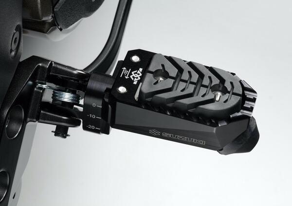 ll capitolo capacità di carico viene affrontato con le valige laterali in alluminio da 37 litri, caratterizzate da rivestimenti in plastica altoresistenziale sugli spigoli, guarnizioni per difendere il contenuto da acqua e polvere, e da apertura superiore per poter accedere al bagaglio anche negli spazi stretti. Completano il quadro le pedane maggiorate regolabili con rivestimento in gomma amovibile per garantire il massimo controllo della moto anche nelle condizioni meteo più severe, quando si guida in piedi oppure si indossano pesanti stivali da off-road e poter modificare altezza e avanzamento, per adattarsi a statura e stile di guida del pilota.