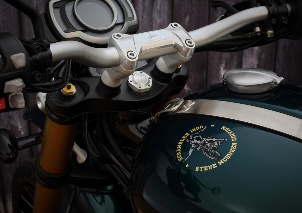 La Scrambler 1200 Steve McQueen Edition differisce dal modello standard per una livrea dedicata, per alcuni dettagli esclusivi, oltre che per una lista di accessori già presenti sulla moto: ogni esemplare ha il proprio numero di serie inciso a macchina sul manubrio, accanto alla firma di Steve McQueen incisa al laser che fa il paio col certificato di autenticità, legato al numero identificativo del telaio della moto, firmato da Nick Bloor, CEO di Triumph Motorcycles, e dal figlio di Steve, l’attore Chad McQueen.