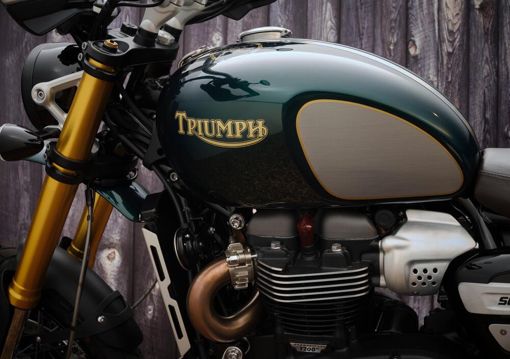 Lo schema cromatico dedicato prevede serbatoio in Competition Green con incavi per le ginocchia spazzolati, filetti color oro dipinti a mano, loghi Triumph “heritage”, grafica serbatoio Steve McQueen, tappo serbatoio Monza in alluminio spazzolato e cinghia serbatoio in allumimio spazzolato. Gli accessori originali montati ex-fabrica includono il parafango anteriore in alluminio montato in posizione alta, in finitura Competition Green così come il parafango posteriore. In aggiunta a quanto previsto dalla versione 1200 XE, la Steve McQueen Edition include le barre di protezione per il motore e la griglia a protezione del radiatore. Completa l’equipaggiamento della Steve McQueen Edition una sella marrone, con cucitura e logo Triumph. La Steve McQueen edition è predisposta per il montaggio dell’accessorio My Triumph connectivity system, che consente la connessione va app con lo smartphone, la gestione di musica e chiamate, l’interfaccia con la GoPro e la navigazione a frecce.