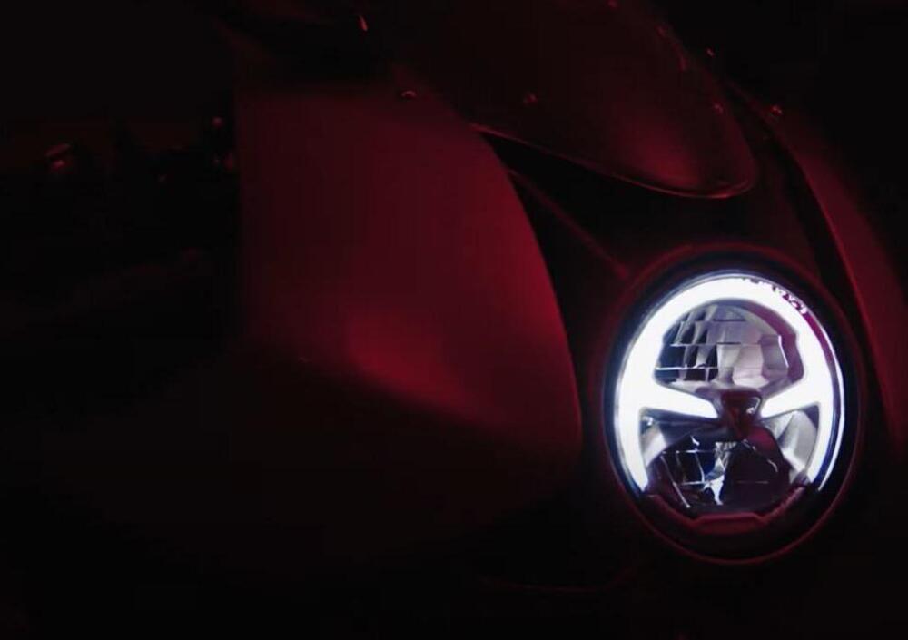 Il video appena pubblicato fa vedere meglio la linea della moto in una vista di tre quarti anteriore nella quale si notano la mezza carenatura dalle linee poco spigolose e dalle forme compatte, il faro rotondo con luce DRL e il filante codino di memoria RS.